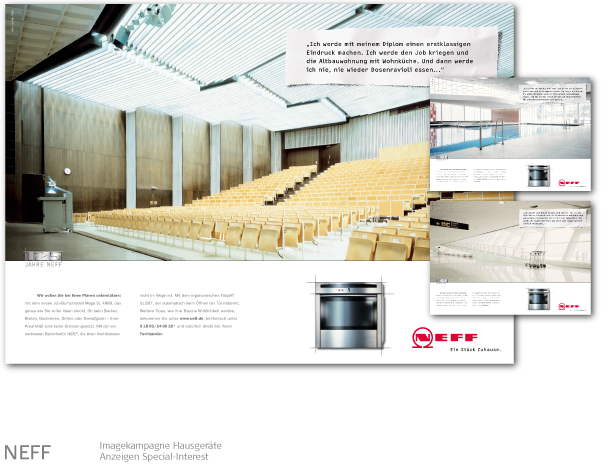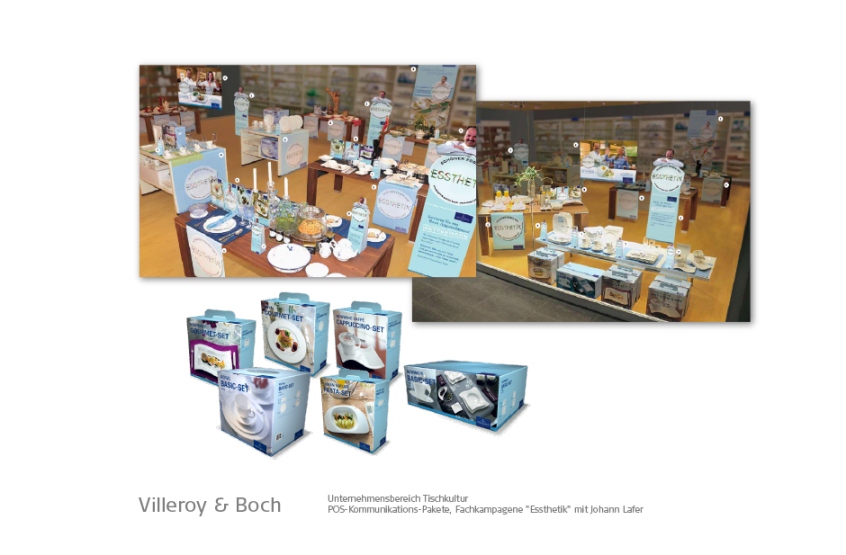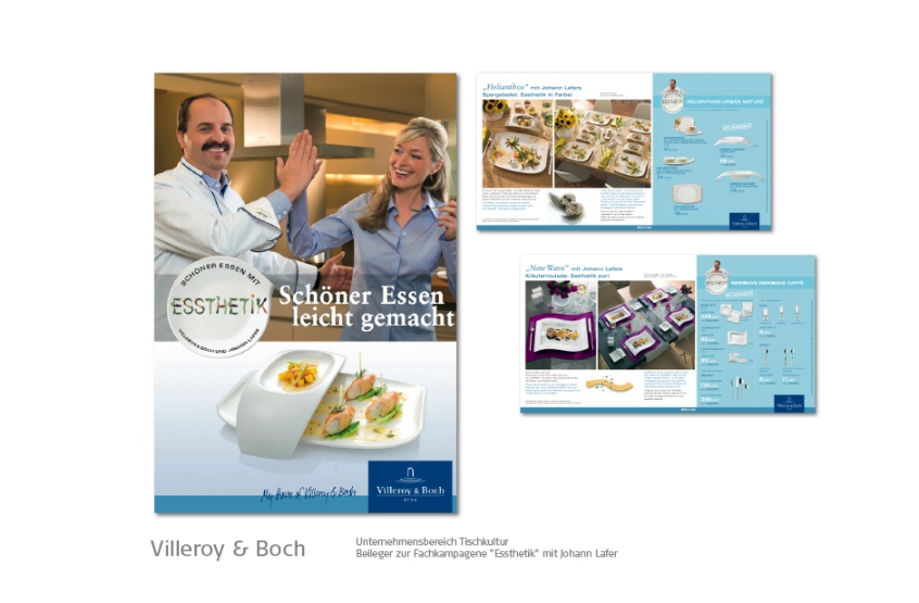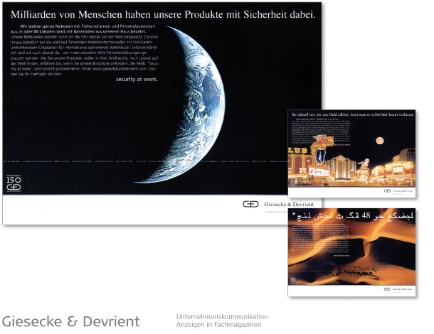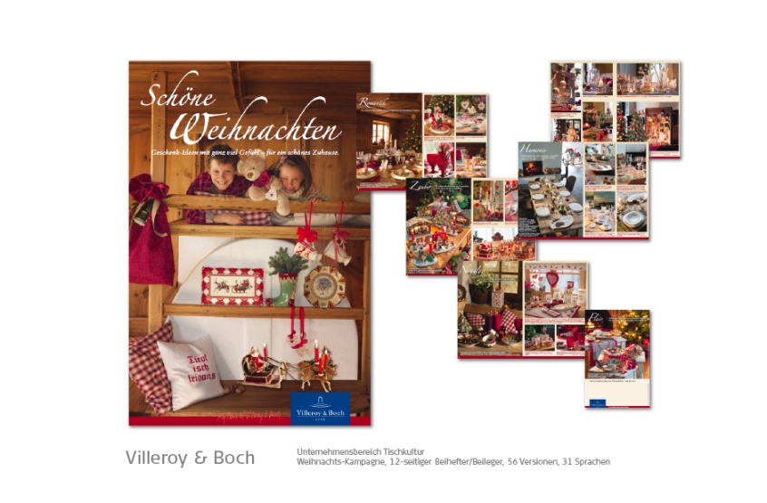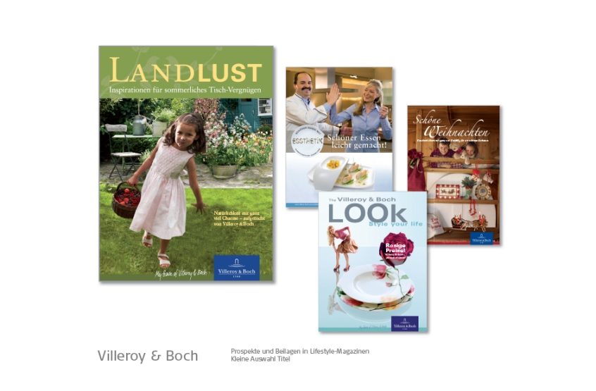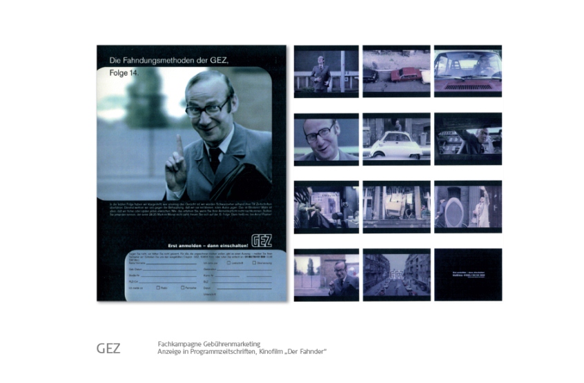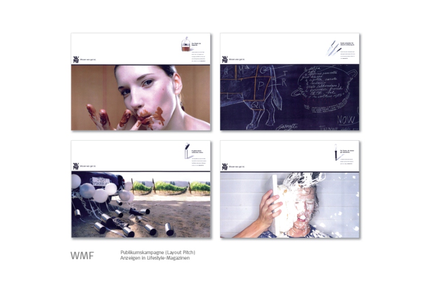 Banken, Bosch-Siemens Hausgeräte, Constructa, Conoco-Oil / JET, FAZ, GEZ, Giesecke & Devrient, Gruner & Jahr, Kindernothilfe, KPM Porzellanmanufaktur, MM Warburg Bank, Omega Uhren, Neff Hausgeräte, Porzellan Manufaktur Meissen, Philip Morris, Reemtsma, Siemens, Tchibo, Viag Intercom / O2, Villeroy & Boch